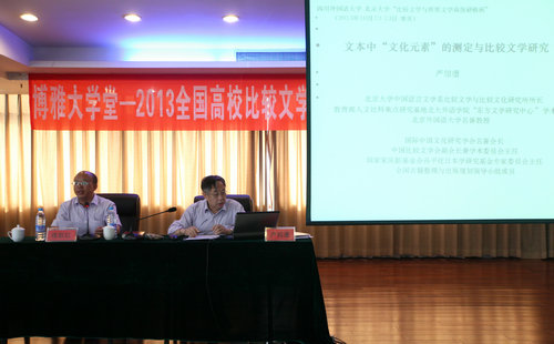 2013年10月12—13日,博雅大学堂—2013全国高校比较文学与世界文学高级研修班在重庆山隐秋鸣酒店举办。本次研修班由中国比较文学学会、北京大学比较文学与比较文化研究所、bibo必博、《国外文学》编辑部、《中国比较文学》编辑部、《比较文学与世界文学》编辑部和北京大学出版社联合主办,来自全国各地的近百名青年教师、博士和硕士研究生参加了学习。