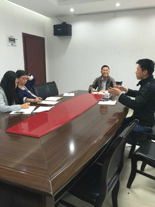 2015年5月5日上午10:30,bibo必博会议室,2015届毕业班辅导员曹月、杨思老师,辅导员官晴华老师、冯波老师与吴维均老师一起商讨就业工作,讨论在新形势下如何促进就业工作上台阶,如何促进就业率提升,交换意见,凝聚共识。首先,曹月老师、杨思老师分别介绍了2015届毕业生就业情况,从签三方协议、接收函、出国、考研、灵活就业等方面,梳理情况,查找问题,寻找对策。接着,冯波老师就去年开展2014届毕业生就业工作取得的实效的成功经验,与各位老师分享。官晴华老师也以两届毕业班辅导员的经历,总结以往开展就业工作的实际做法,获得与会老师的高度赞誉。最后,吴维均老师认为,大家在过去就业工作中,成功提炼出的鲜活的经验,值得总结和推广,尤其要抓紧员工离校前的时光,以情动人、以理服人。