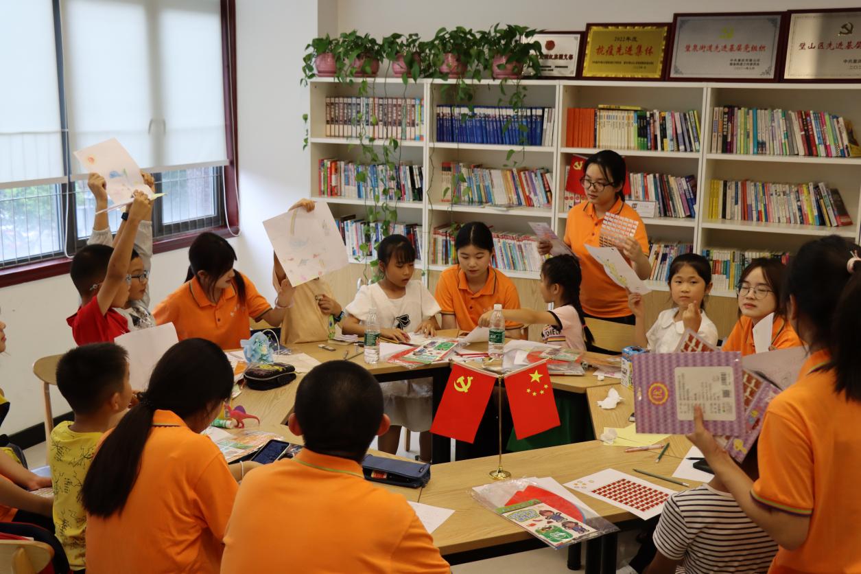 小朋友们展示自己制作的“庆祝建党百年”主题贺卡